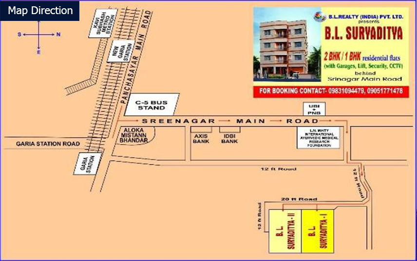 B.L. SURYADITYA is located at a walking distance of 5 minutes from Garia Railway Station and C-5 Bus stand and 10 mins walking distance from Kavi Subhash Metro Station, and at a radius of just 1.5 kms from EM Bypass and Highland Park, the apartment is situated in a very appropriate location in terms of transportation, catering to the vital needs of today’s citizens like education, entertainment and medical requirements.