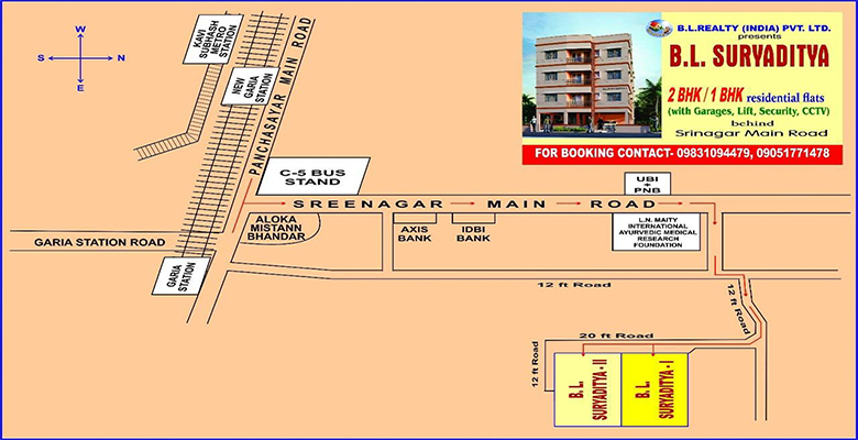 The proposed B.L. SURYADITYA-Tower 2 will be developed at a walking distance of 5 minutes from Garia Railway Station and C-5 Bus stand and 10 mins walking distance from Kavi Subhash Metro Station, and at a radius of just 1.5 kms from EM Bypass and Highland Park, the apartment is situated in a very appropriate location in terms of transportation, catering to the vital needs of today’s citizens like education, entertainment and medical requirements.